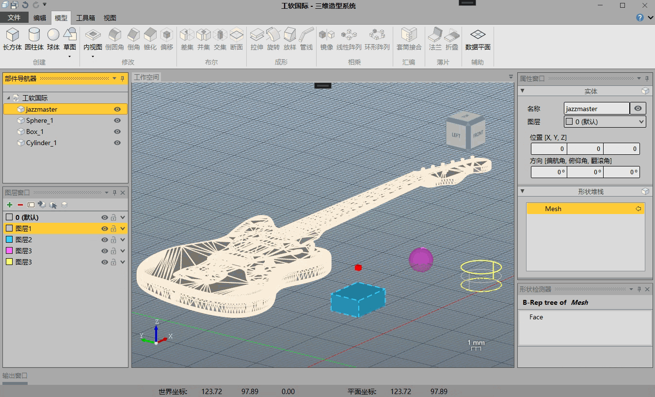 三维几何造型系统是基于OpenCascade开源建模系统和C#语言WPF界面框架开发的三维建模软件。